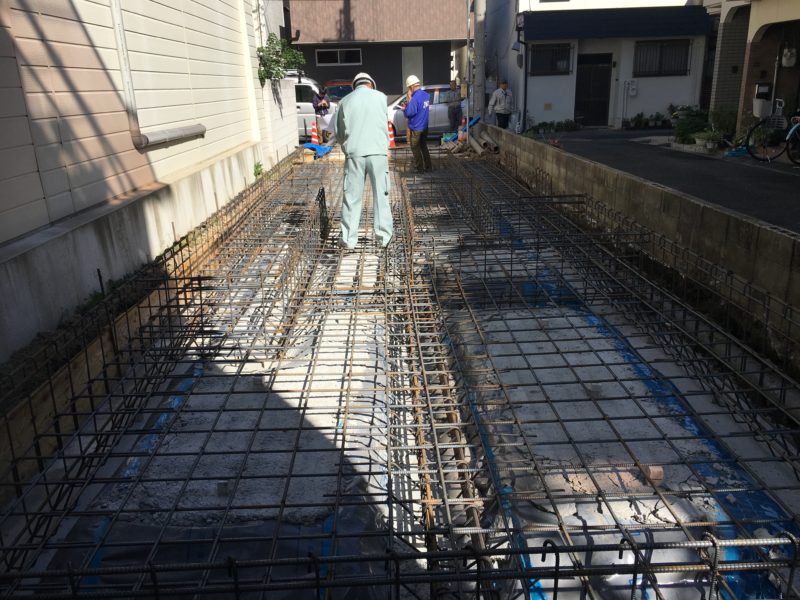 大阪の注文住宅リーフアーキテクチャ「路地のある家」配筋検査風景