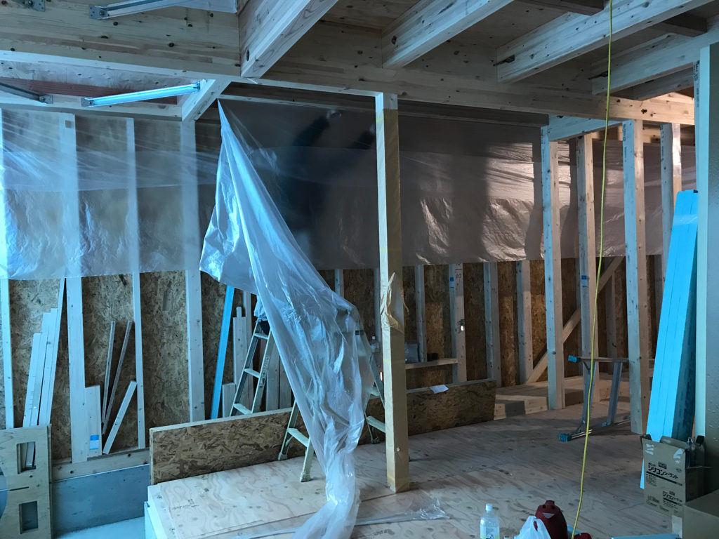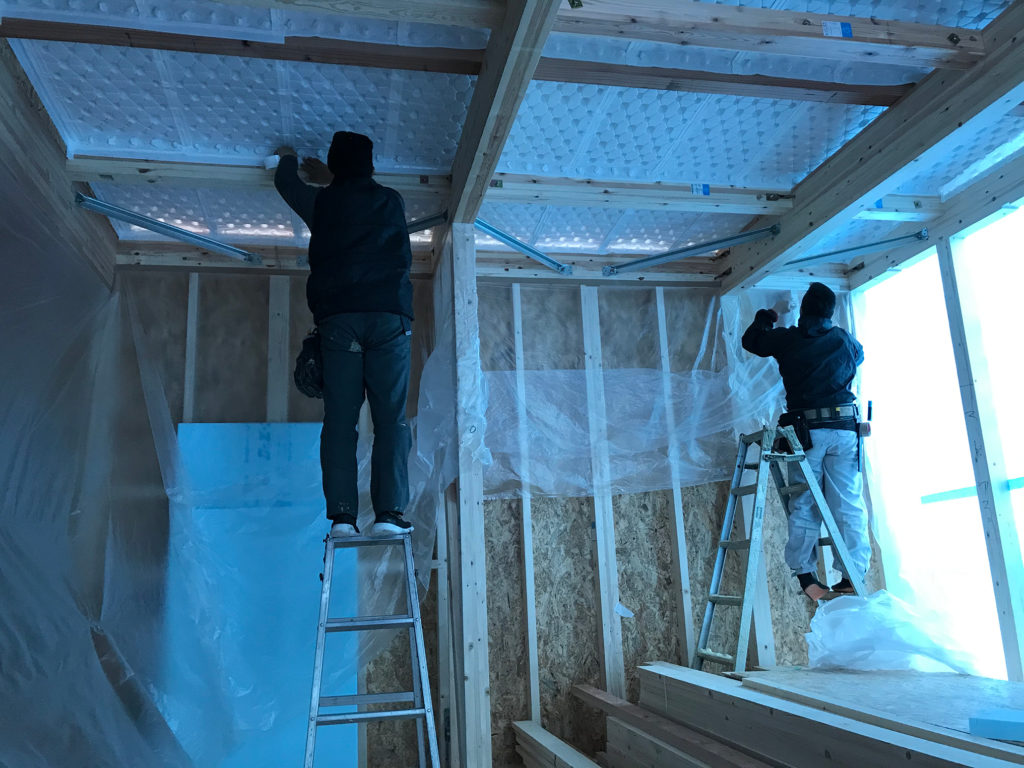 断熱材「アイシネン」の吹付け工事をしていただきました。