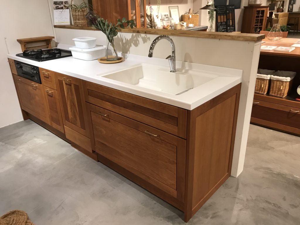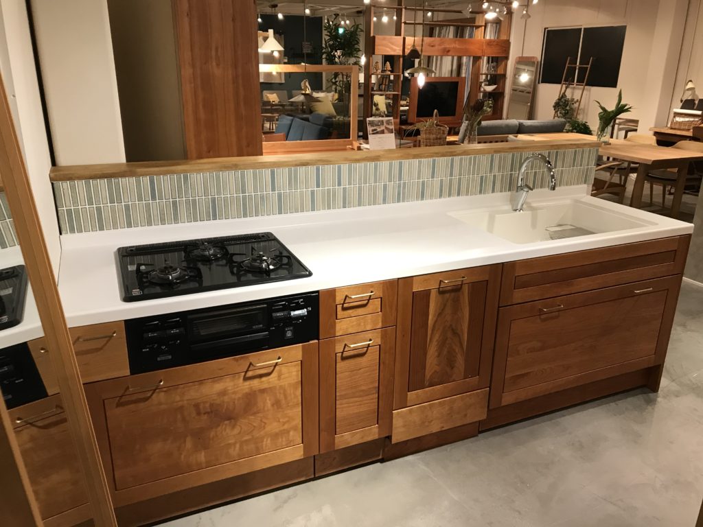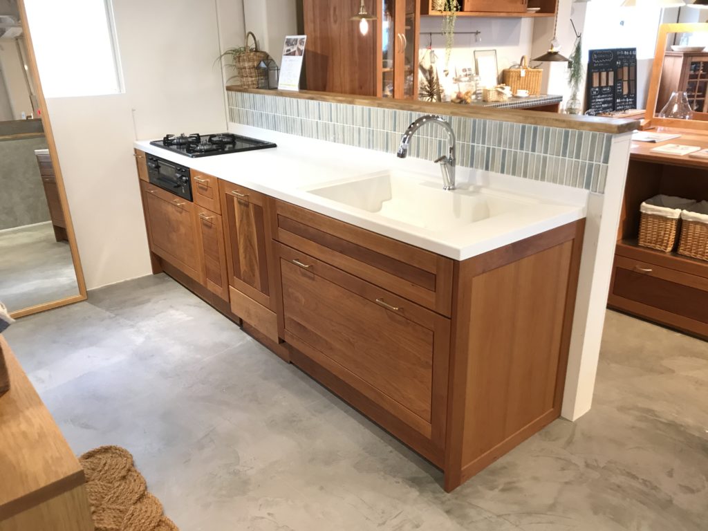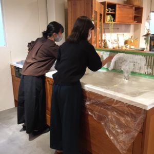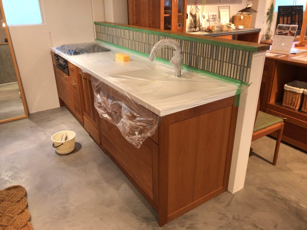 一昨日とその前日で、ブラックチェリー材のキッチンにある腰壁の立ち上がりに、