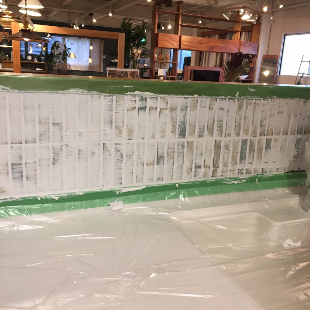 スタッフみんなで目地埋めをすることになりました。みんな初体験です(笑)