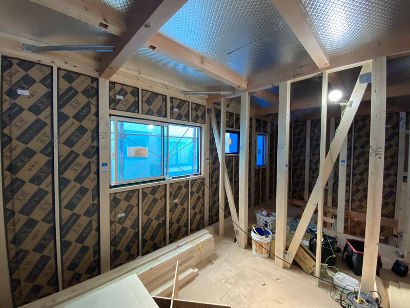 この後も工事が順調に進み、年末には断熱材のスーパーウォールパネルや、第1種熱交換換気の澄家の設置も完了しました。