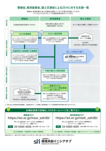 まず、一口にZEH助成金と言っても、その窓口は次の3省庁にまたがります。(マンションもありますが今回のご紹介は戸建てのみ)