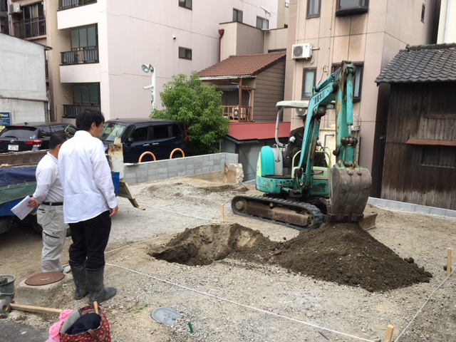 間もなく着工の天王寺モニターハウス現場では、本日文化財の試掘調査が行われました。