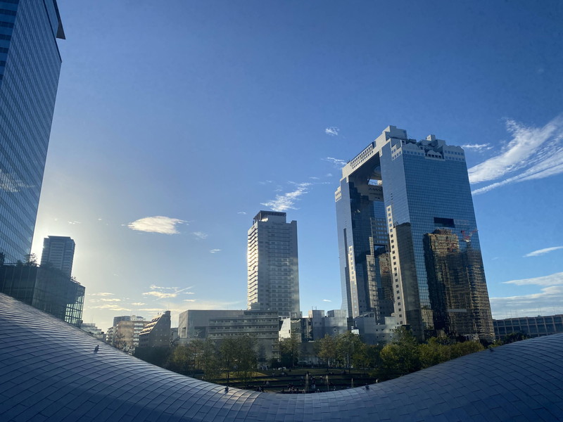 公園の北東角に出ると目の前に梅田スカイビルが。
