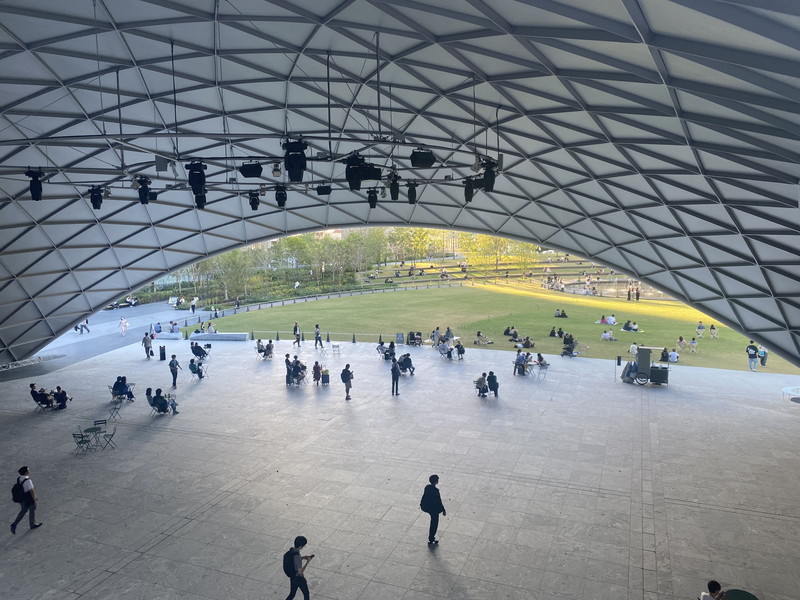 スロープを登りきると先ほど通り抜けた大屋根の下を眺めることができました。