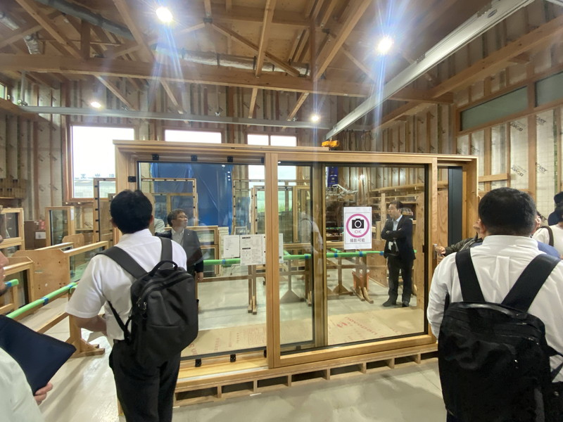 翌朝はバスツアー。1件目は国内産高性能木製サッシュで有名な「佐藤の窓」の大丸工業さん工場見学です。