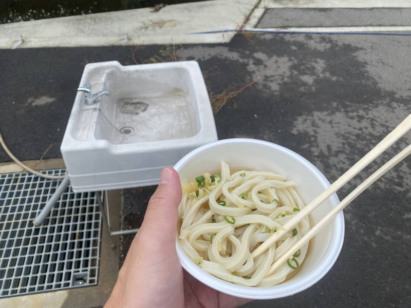 工場を出たらなんと讃岐うどんの振る舞いが!