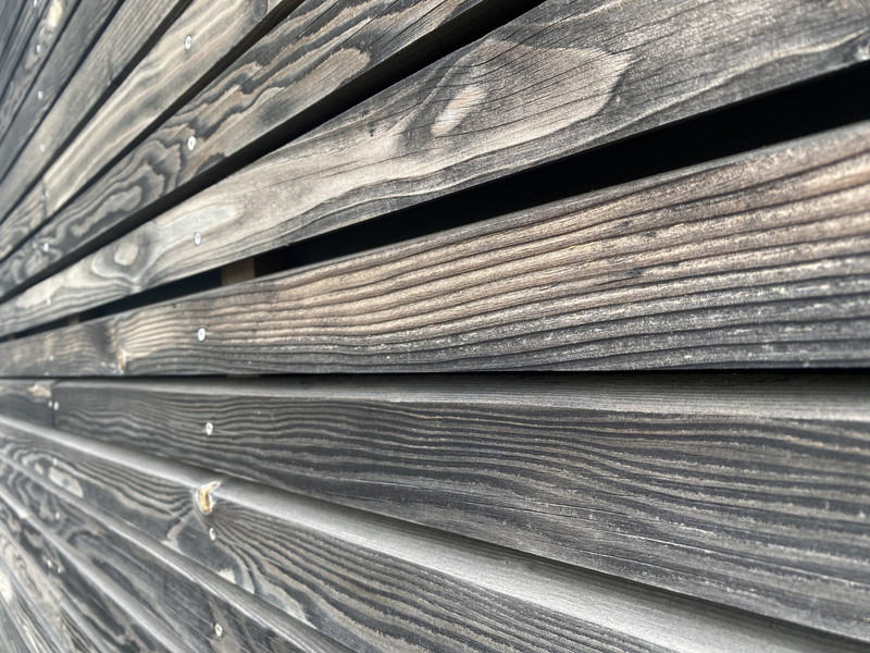 この写真は横張ですが、今回、大臣認定の取得予定なのは縦張りに限るとのこと。法の規制はなかなか厳しいですね・・・