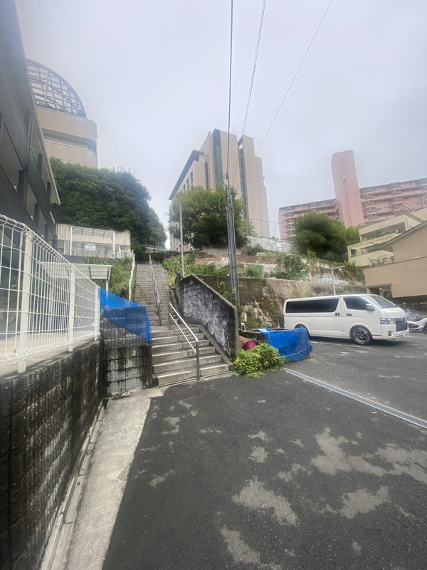 阪神高速の下を潜り抜けて、上町台地に上る階段の袂の広場に。