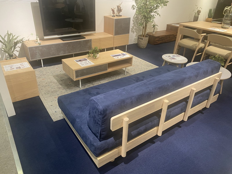 同じブースにあった、テレビボードやソファ。