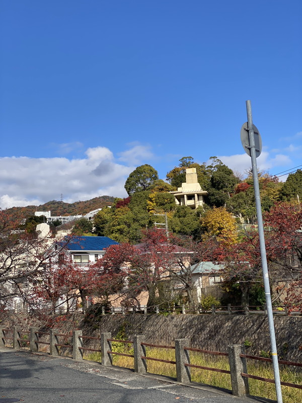 その坂道を駅から登っていくとほどなく、右手の尾根の先端にヨドコウ迎賓館が姿を現します。