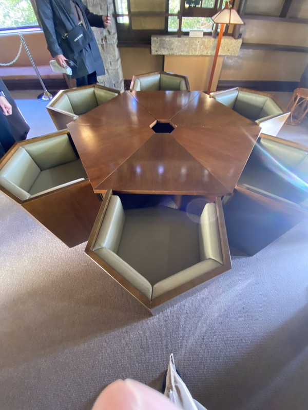 ライトに限らず、建築家は照明や家具のデザインも良く行っていますが、ここヨドコウ迎賓館でもオリジナルでデザインされたであろう、家具や照明を見ることができます。