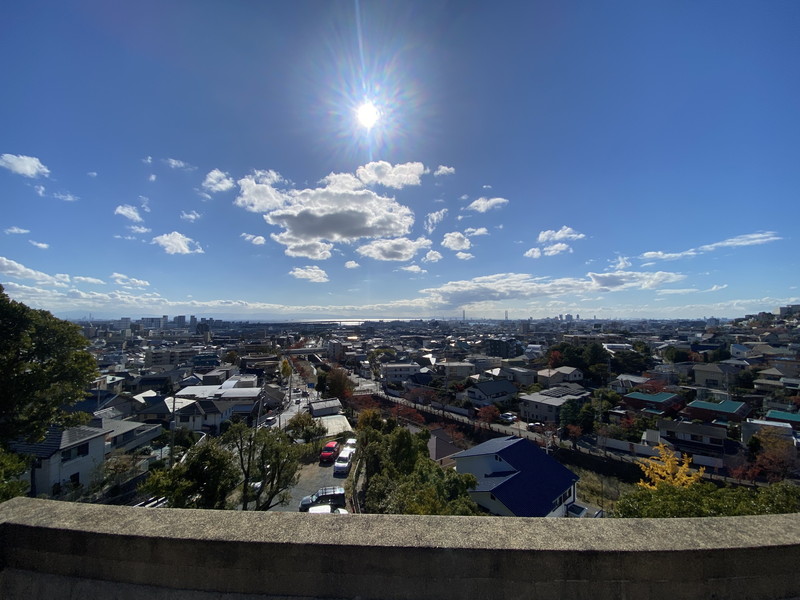 圧巻が、食堂から出ることのできるバルコニー。尾根の先端に突き出るように配置されています。そこからは大阪湾が一望のもとに見渡せていました。この日は晴天に恵まれたこともあり、本当に気持ちの良い空間でした。