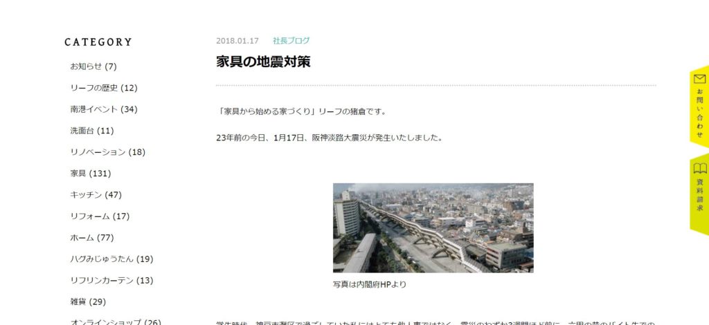 今回も、倒れてきた書棚の下敷きになり、亡くなられた方がいらっしゃいました。こちらも、家具を長年扱うものとして残念でたまりません。