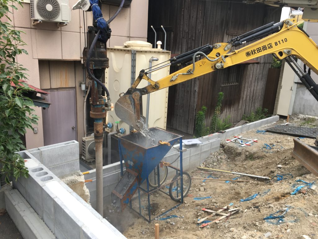 「天王寺の家」地盤改良工事始まりました。
