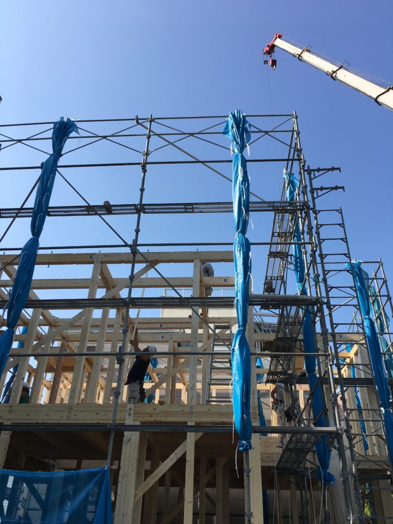 色々ありましたが、上棟の日は空も晴れ渡り、スムーズに作業が進みました。