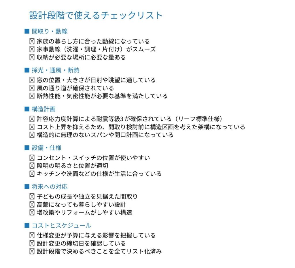 設計の際のチェックポイントをリスト化しましたので是非、参考にされてみてください。