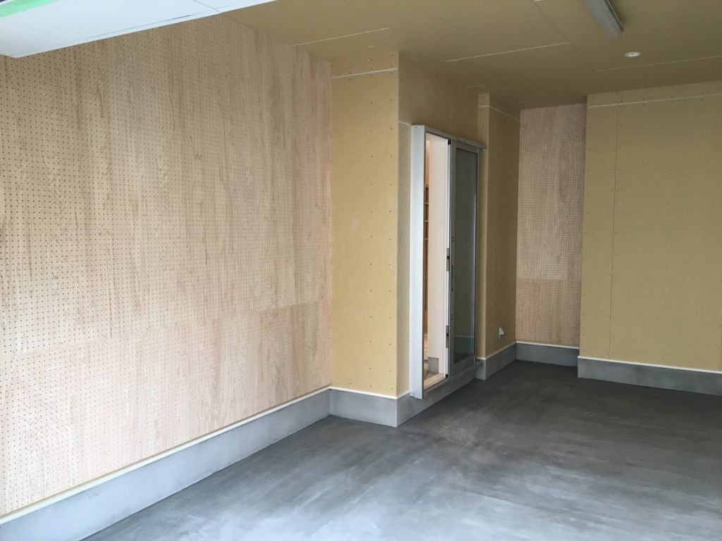 壁にはパンチングボードを取付け、工具類が吊れるように。