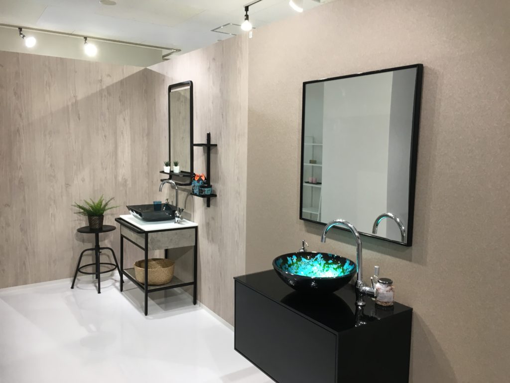 最近は出展企業も多く、人気のとのこと、先日もフロアを巡っていると新しい洗面機器のショールームが誕生していました。