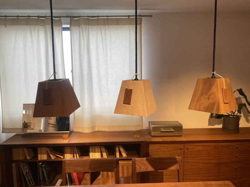 ショールーム内には家具だけではなく、照明や鞄などの雑貨も。家具の製造過程で出た端材を再利用して様々な小物も作られていました。