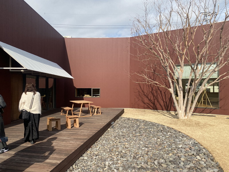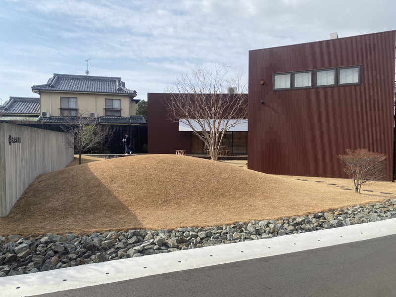 その丸徳家具店さんのショールームは築山のある広い芝生のなかに建てられたとてもカッコいい建物でした。