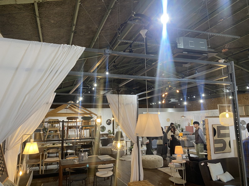 見ごたえのあった丸徳家具店さんを後に、昨日も訪れた産業会館の総合会場へ。一通り、会場内を見た後、外に出て車を走らせているとたまたま雑貨卸の商社さんの展示会が倉庫で行われているのを発見。リーフでも何点か雑貨を仕入れさせてもらってる商社さんです。当初の予定にはありませんでしたが、急遽、車を止めて見学させてもらいました。