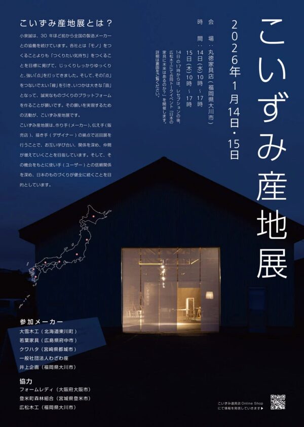 2日間、あわただしく回った大川家具新春展。スタッフ全員でいったおかげで現在の家具の潮流を共有することができました。何よりも、今回訪問したメーカーさん何社かとの間で、いろいろと新しいプロジェクトが生まれそうなのが大きな収穫でした。