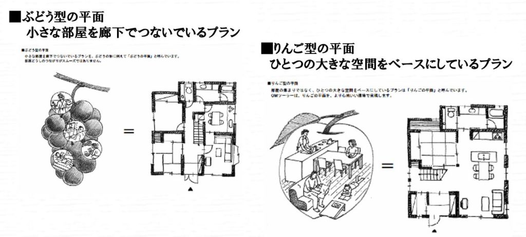 廊下のスペースがないので、「ぶどう型」よりも床面積が狭くても狭さを感じさせないのが「りんご型」の特徴です。