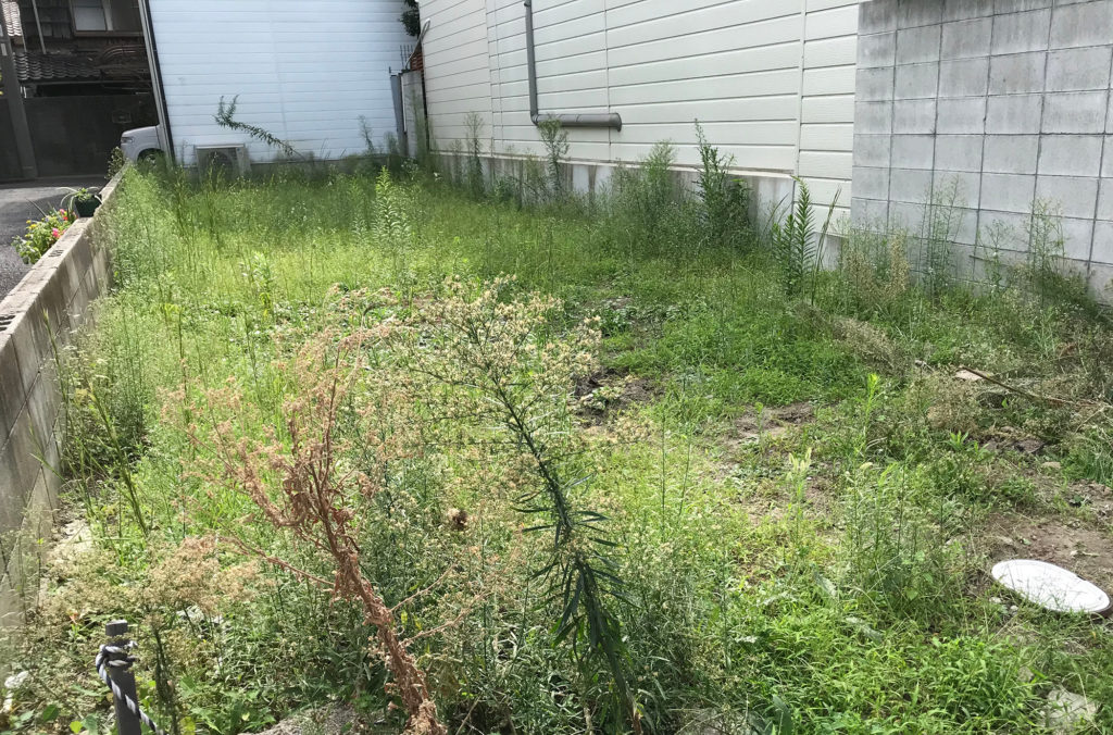 先日、住吉区にて着工の新築現場の草刈りをしに再び行ってきました。