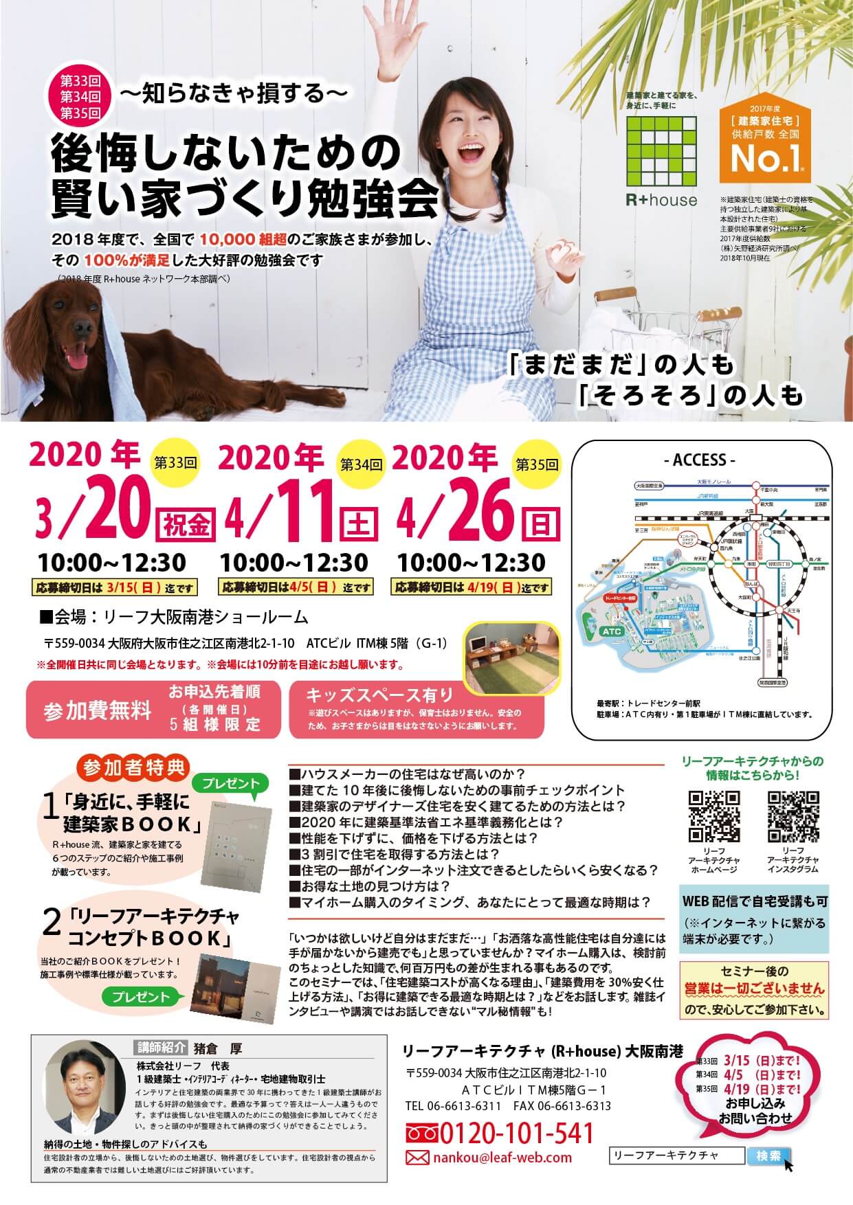 2020年3月20日(祝金)・4月11日(土)・4月26日(日)大阪南港ATCにて開催「後悔しないための賢い家づくり勉強会」※追記:4/11・4/26はWEBセミナーとなりました。