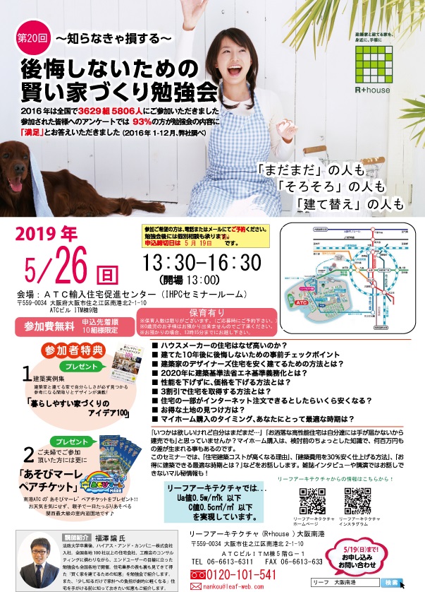 2019年5月26日(日)大阪南港ATCにて開催 「第21回 後悔しないための賢い家づくり勉強会」