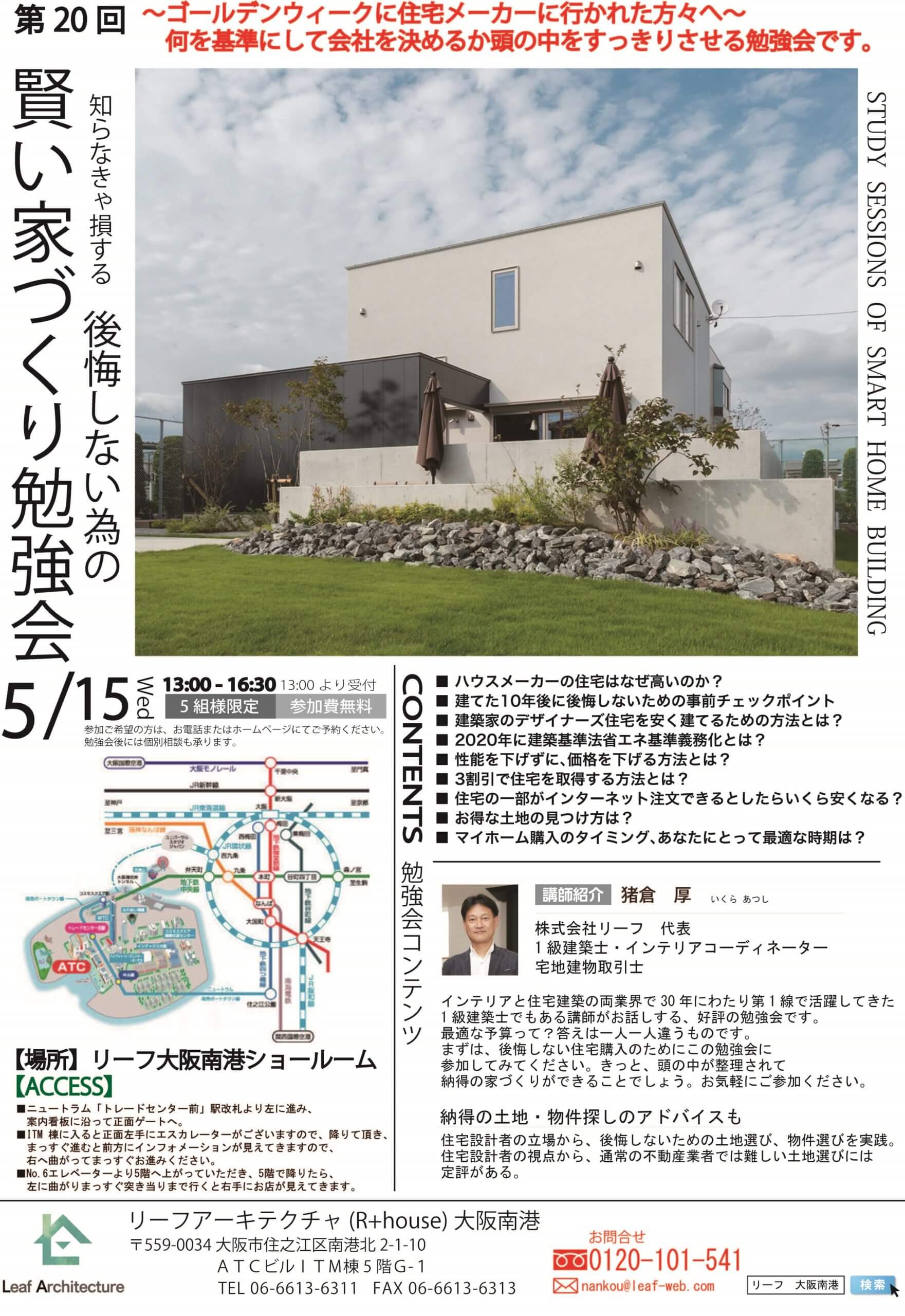 2019年5月15日(水)大阪南港ATCにて開催 「第20回 後悔しないための賢い家づくり勉強会」