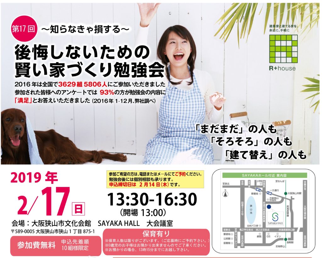 2019年2月17日(日)大阪狭山市にて開催 「第17回 後悔しないための賢い家づくり勉強会」