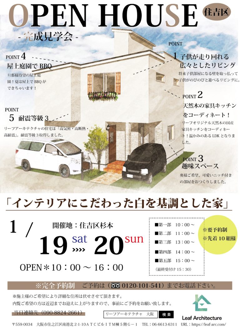 1月19日(土)・20日(日)2日間限定! 住吉区M様邸完成見学会開催!