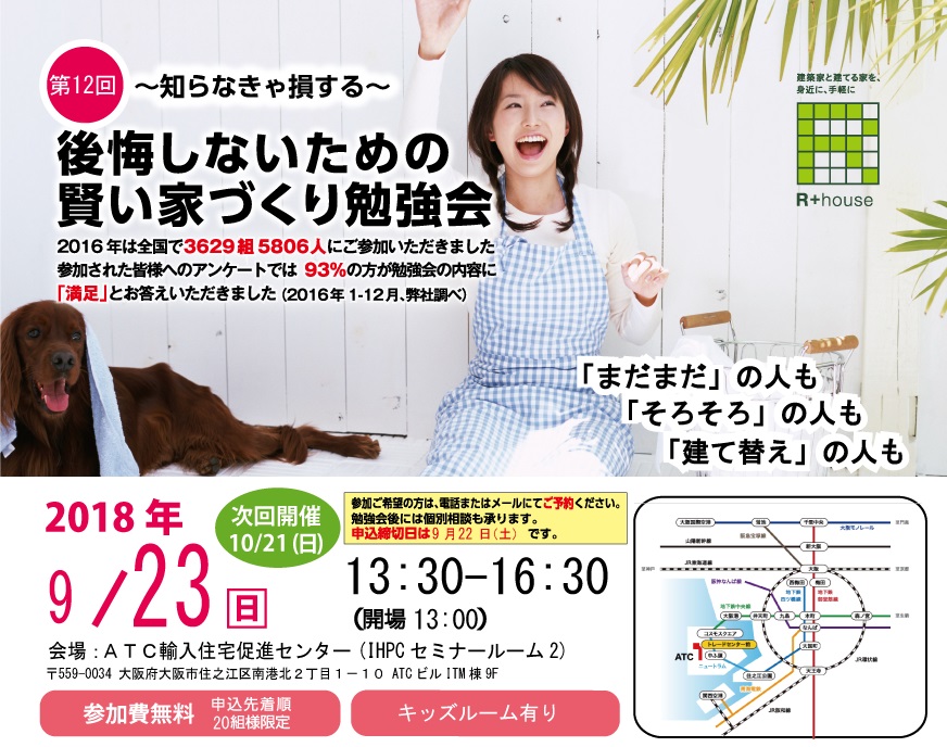9月23日(日) 「第12回 後悔しないための賢い家づくり勉強会」(夫婦参加であそびマーレチケットプレゼント!)