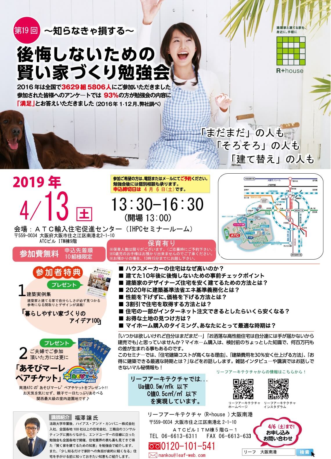 2019年4月13日(土)大阪南港ATCにて開催 「第19回 後悔しないための賢い家づくり勉強会」