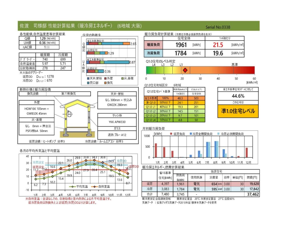 外皮性能:Ua値=0.38