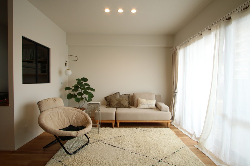 中古マンションをスケルトン状態にして自然素材のフルリノベーションすることで、天然木フローリングや天然木キッチンなどの自然素材のインテリアや自由な間取り設計が可能になり、まるで注文住宅のような快適な空間を手に入れられます。