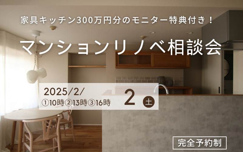 天然木家具キッチンが無料!モニター特典付マンションリノベーション相談会