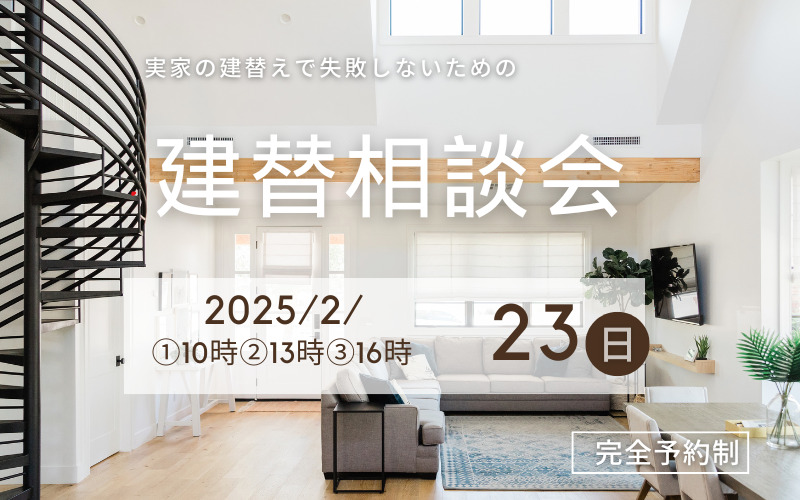 この「実家の建て替え相談会」では、実家を建て替える際に必要なステップや、資金計画、家族との合意形成などに関する個別相談を行います。