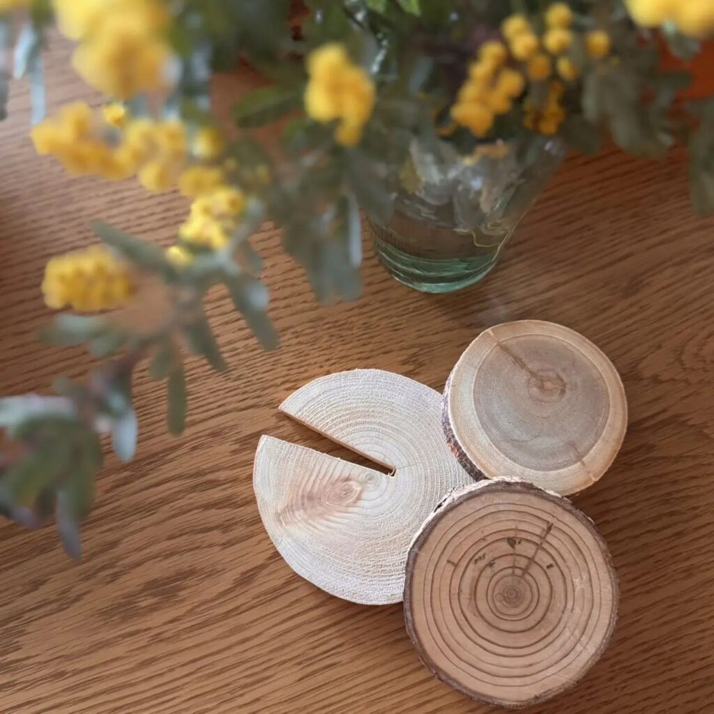弊社のワークショップでは丸太を使ったコースター作りを体験していただきます。