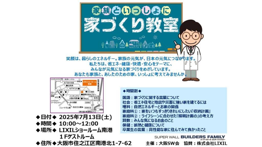 LIXIL大阪南港ショールームにて家づくり教室開催します!