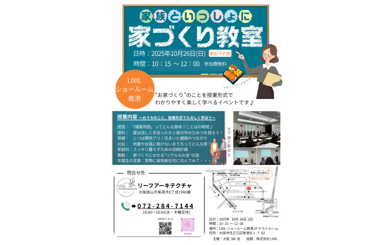 LIXIL大阪南港ショールームにて家づくり教室開催します!