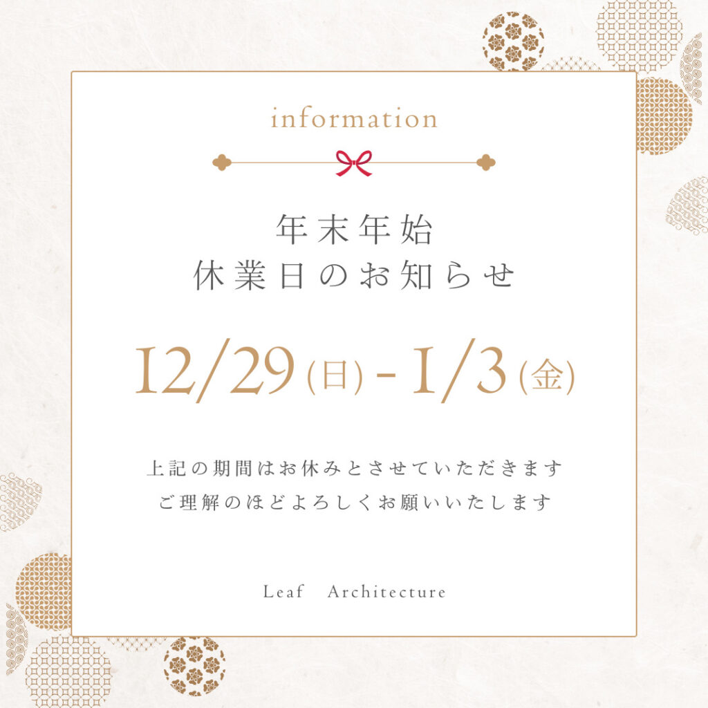 12月29日(日)~1月3日(金)を年末年始休業とさせていただきます。