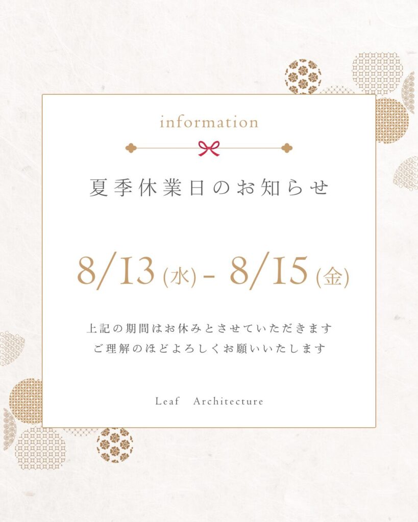 8月13日(水)~8月15日(金)を夏季休業とさせていただきます。
